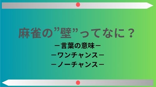 Mリーグや麻雀最強戦などの解説を聞いていると、「二萬が壁になっていますね」といった解説を聞くことがあります。 この「壁」という言葉、よくわからずにスルーしてしまっているという方も多いはず。 この壁とは何なのか、壁に関連した「ワンチャンス」や「…